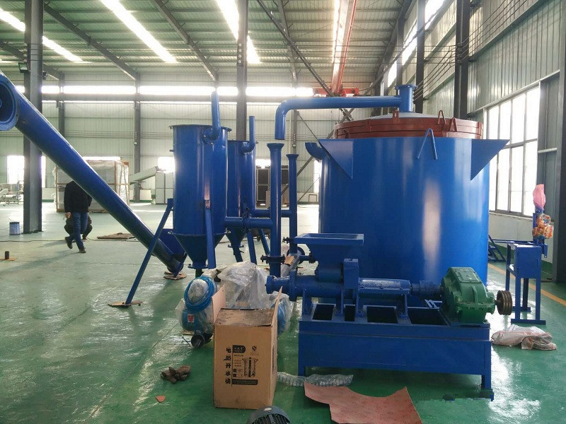 國家對于保護環境的重視程度,一度造成了木炭的緊缺,這就讓人們將眼光放到了其他可以做成炭的各種生物質,首先就是鋸末,鋸末是做成機制炭的優質原料,采用滾筒篩把含水量30%的鋸末篩選后成為合格的原料,采用粉碎機把原木粉碎成鋸末,進入滾筒烘干機,干燥后達到制棒要求。干燥后的原料采用單螺旋上料機輸入雙螺旋下料機,分別進入五臺棒機,生產薪棒。把薪棒裝入炭化爐內膽,為炭化做好準備。采用生物質氣化爐為炭化薪棒前期造可燃氣預燒,即把烘干后的鋸末、稻殼等生物質原料放入氣化爐攤平30公分厚,點燃后再覆蓋40公分厚,啟動風機,把氣化爐產生的可燃氣體(甲烷、乙烷、一氧化碳等)抽出的同時經過除塵、凈化、焦油收集后轉化為純凈的可燃氣,輸入炭化爐底部加溫預燒,炭化爐內膽的薪棒產生的可燃氣返回爐底,燃燒自體,如此循環炭化,生產過程中無煙氣、無污水排放,達到環保目的。副產品:生產過程中收集的木焦油和木醋液可直接銷售。